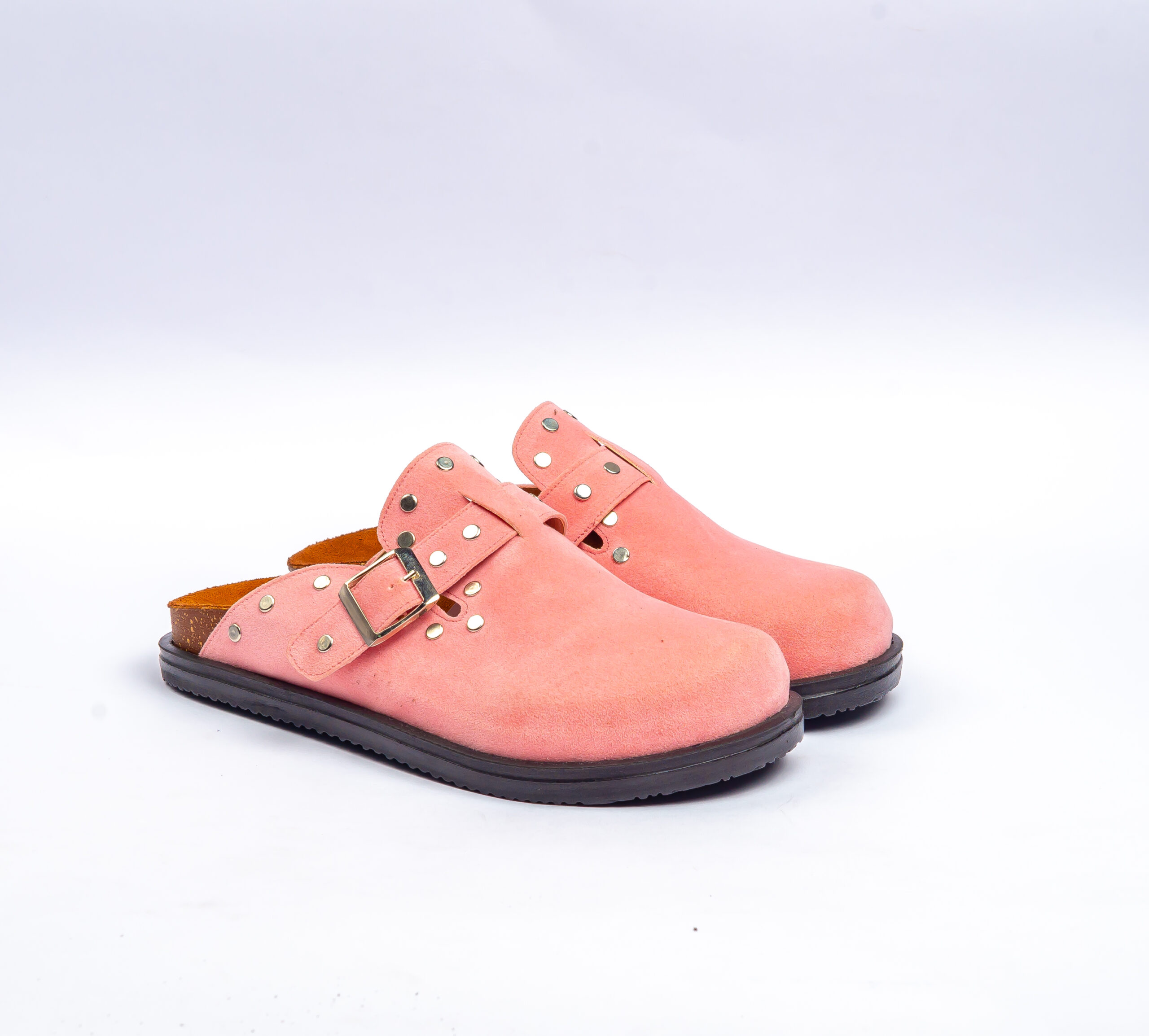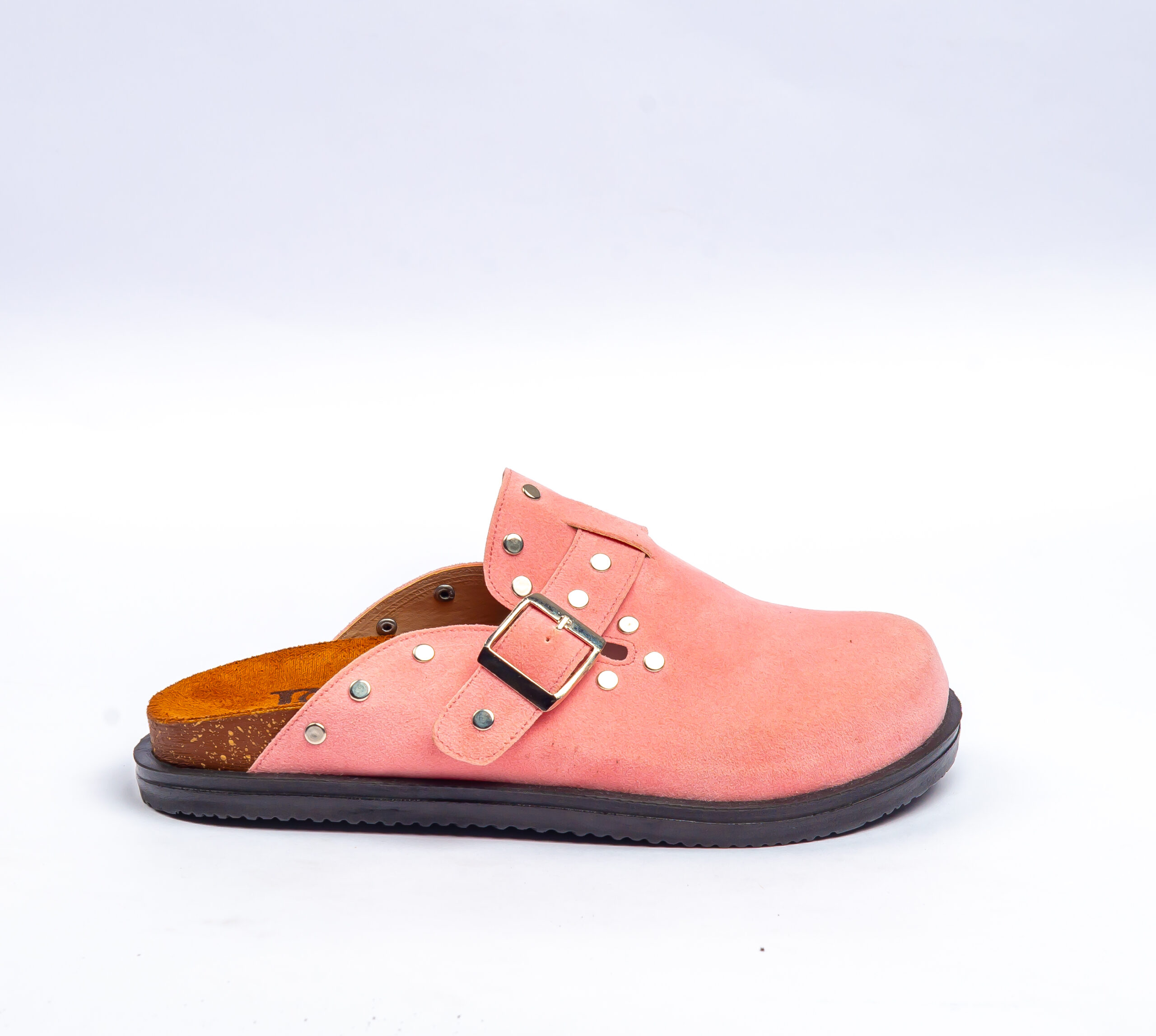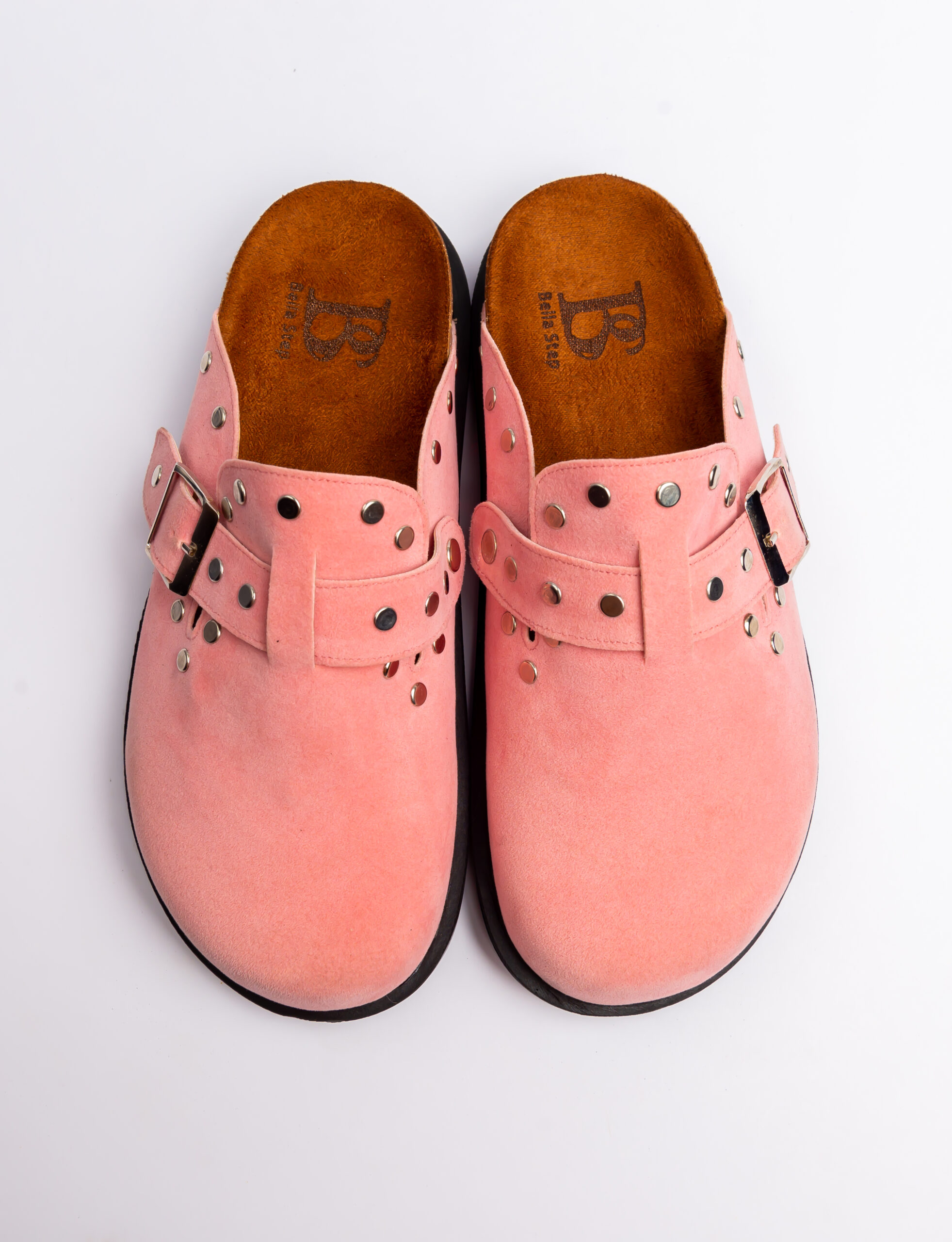 Pink Suede Clogs with Buckle